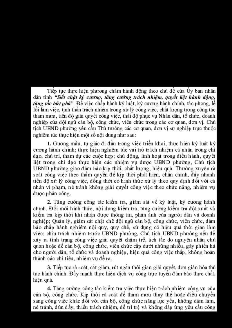Về việc tiếp tục tăng cường kỷ luật, kỷ cương hành chính