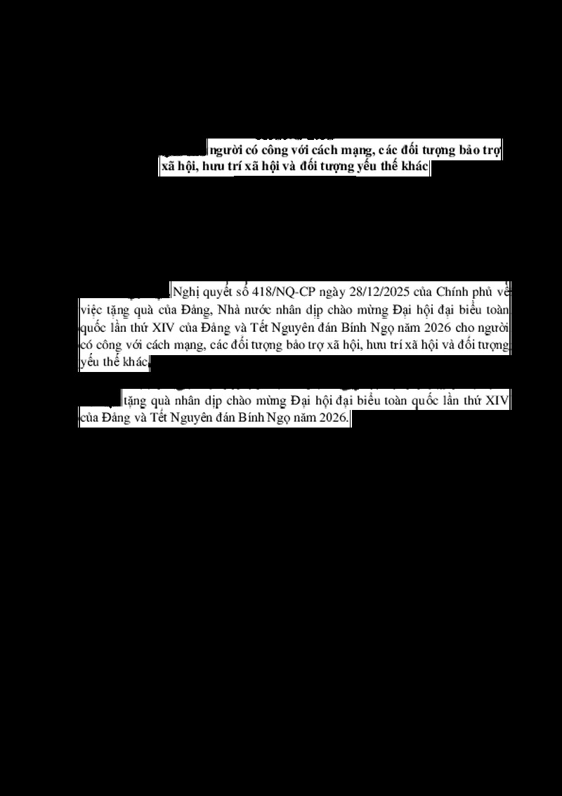 Về việc tặng quà cho người có công với cách mạng, các đối tượng bảo trợ xã hội, hưu trí xã hội và đối tượng yếu thế khác