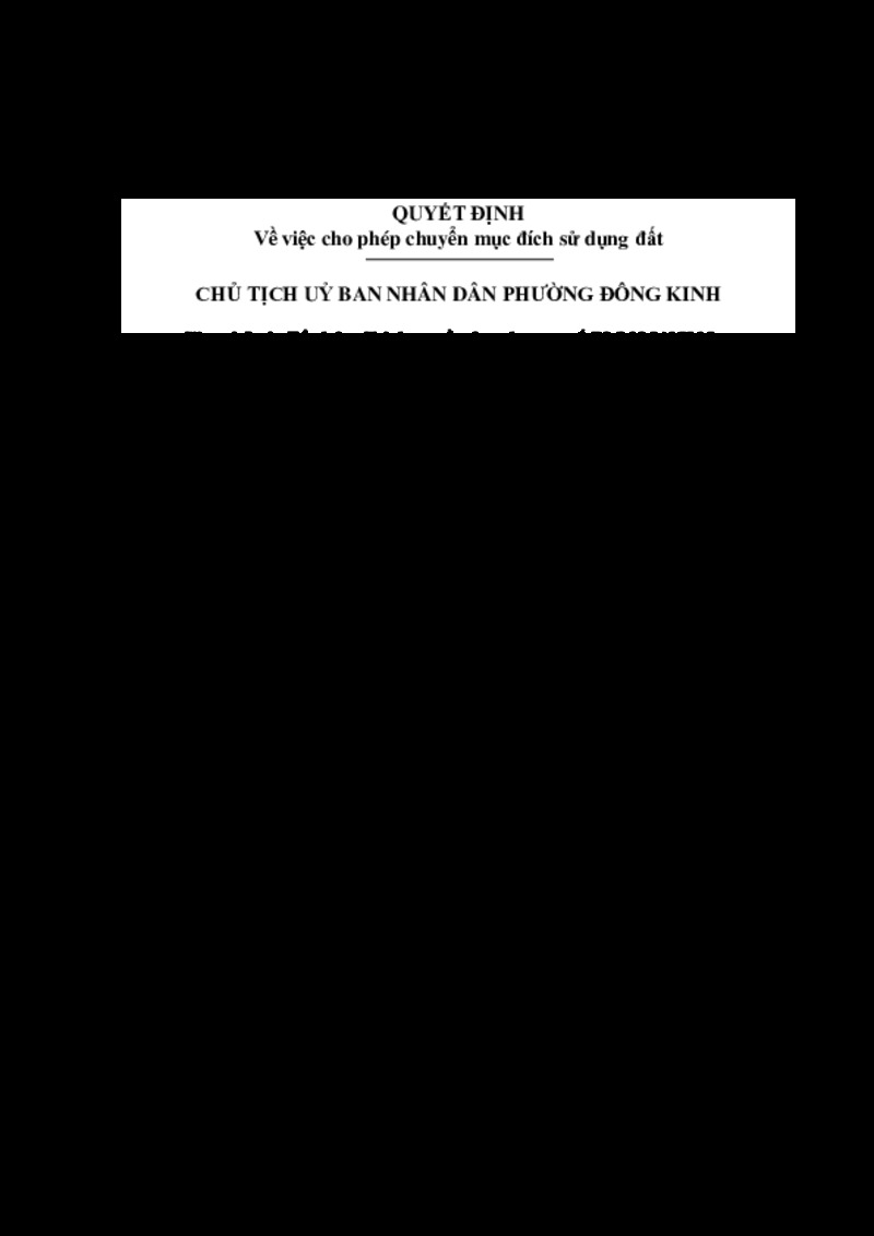 Cho phép ông Hoàng Văn Thường, nơi thường trú: Khối Khòn Phổ, phường Đông Kinh, tỉnh Lạng Sơn được chuyển mục đích sử dụng 673,1 m2 đất trồng lúa nước còn lại và hình thức sử dụng đất sau khi chuyển mục đích sử dụng đất là giao đất có thu tiền sử dụng đất tại khối Khòn Phổ, phường Đông Kinh, tỉnh Lạng Sơn.