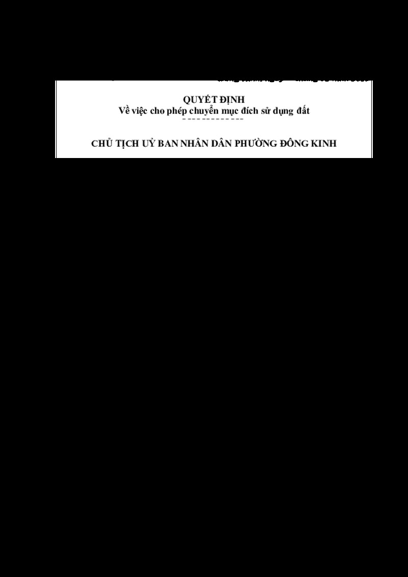Cho phép ông Vũ Văn Hòa và bà Phạm Thị Lượt, địa chỉ thường trú: thôn Viên Ngoại, xã Nam Tiền Hải, tỉnh Hưng Yên được chuyển mục đích sử dụng 238,2 m2 đất trồng cây hàng năm khác và hình thức sử dụng đất sau khi chuyển mục đích sử dụng đất là giao đất có thu tiền sử dụng đất tại khối Nà Thà, phường Đông Kinh, tỉnh Lạng Sơn.