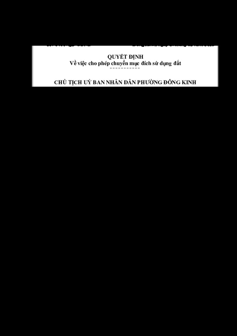 Cho phép ông Hoàng Văn Mình và bà Trần Thị Ngọc, địa chỉ: Khối Pò Đứa - Pò Mỏ, phường Đông Kinh, tỉnh Lạng Sơn được chuyển mục đích sử dụng 408,3m2 đất trồng cây hằng năm khác và hình thức sử dụng đất sau khi chuyển mục đích sử dụng đất là giao đất có thu tiền sử dụng đất tại khối Khối Pò Đứa - Pò Mỏ, phường Đông Kinh, tỉnh Lạng Sơn.