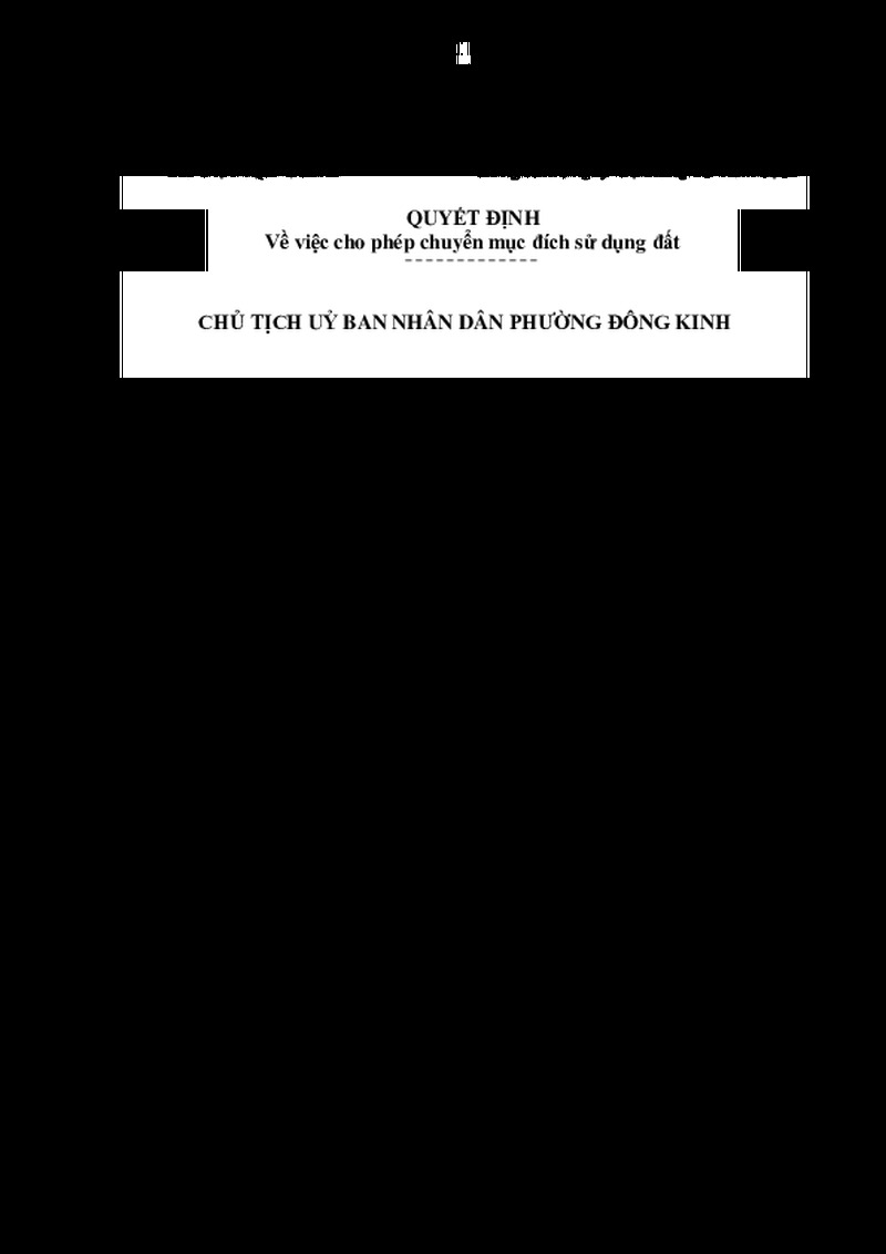 Cho phép Bà Lô Thị Lan; địa chỉ: khối 7, phường Tam Thanh, tỉnh Lạng Sơn được chuyển mục đích sử dụng 1.949,3m2 đất rừng sản xuất và hình thức sử dụng đất sau khi chuyển mục đích sử dụng đất là thuê đất trả tiền thuê đất hàng năm tại khối Yên Thủy 2, phường Đông Kinh, tỉnh Lạng Sơn.
