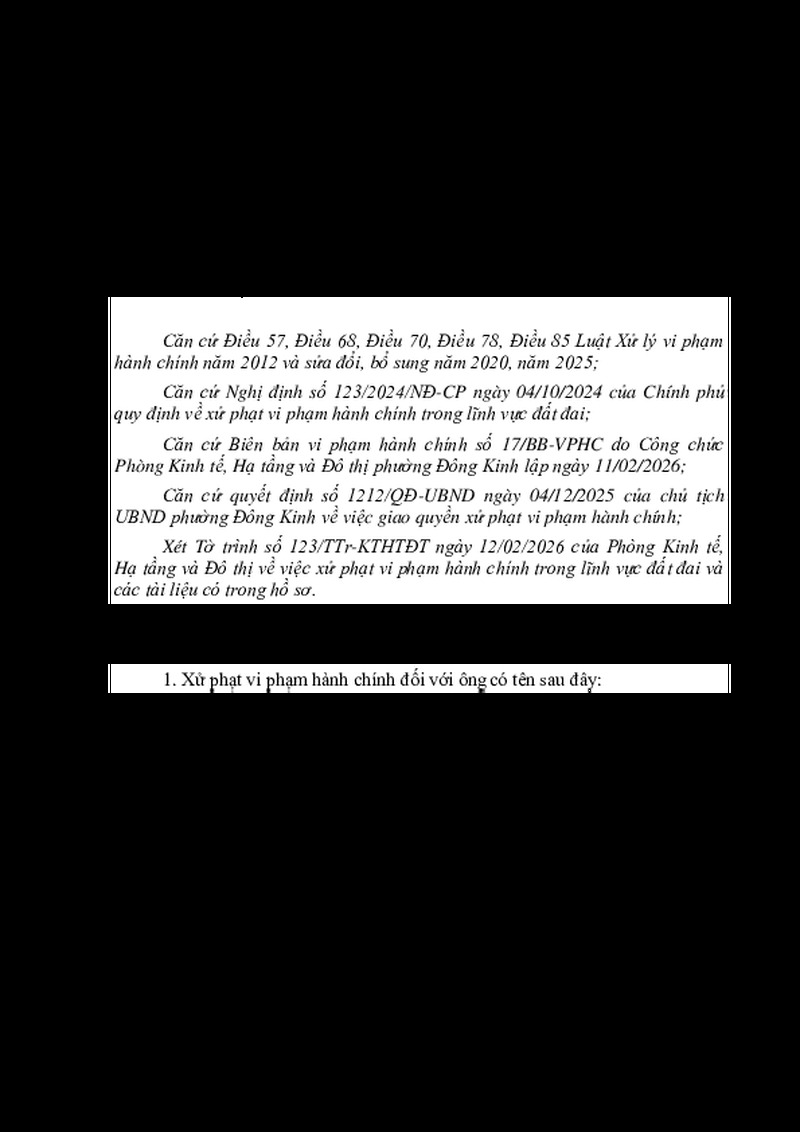1. Xử phạt vi phạm hành chính đối với ông có tên sau đây: