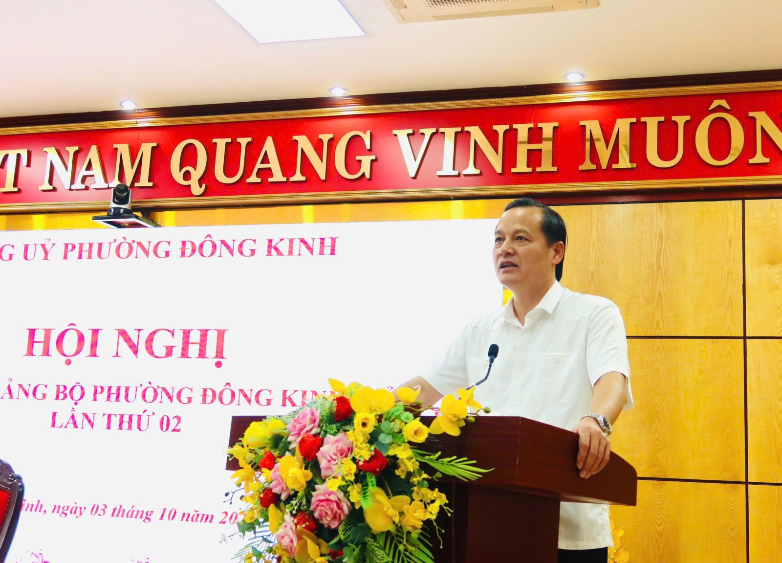 Chiều ngày 03/10/2025, tại Hội trường tầng 5 – Trụ sở Đảng ủy phường Đông Kinh, Ban Chấp hành Đảng bộ phường tổ chức Hội nghị lần thứ II (mở rộng) nhằm đánh giá kết quả công tác 9 tháng đầu năm, triển khai nhiệm vụ trọng tâm 3 tháng cuối năm 2025 và quán triệt một số nội dung quan trọng trong công tác xây dựng Đảng, xây dựng chính quyền địa phương hai cấp.