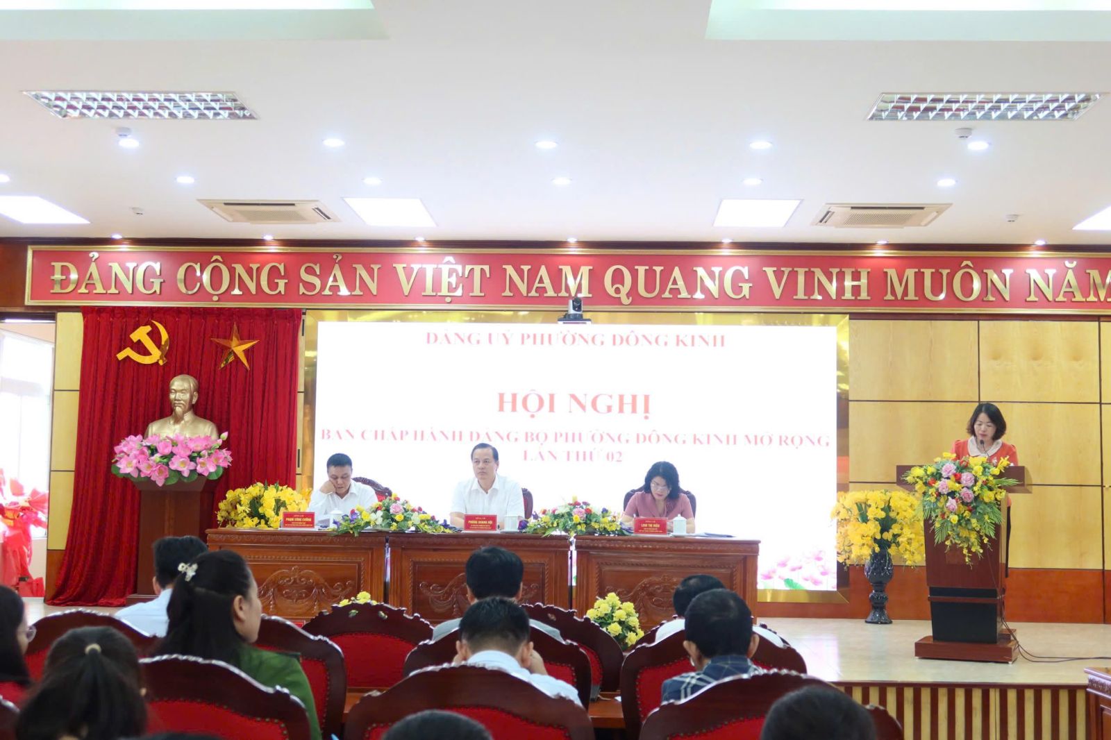 Chủ trì Hội nghị có đồng chí Phùng Quang Hội – Ủy viên Ban Thường vụ Tỉnh ủy, Bí thư Đảng ủy phường Đông Kinh; đồng chí Phạm Công Cường – Phó Bí thư Thường trực Đảng ủy, Chủ tịch HĐND phường; đồng chí Linh Thị Hiền – Phó Bí thư Đảng ủy, Chủ tịch UBND phường. Tham dự Hội nghị có các đồng chí Ủy viên Ban Thường vụ, Ủy viên Ban Chấp hành Đảng bộ phường; Ủy viên Ủy ban Kiểm tra Đảng ủy; Bí thư các chi, đảng bộ trực thuộc.