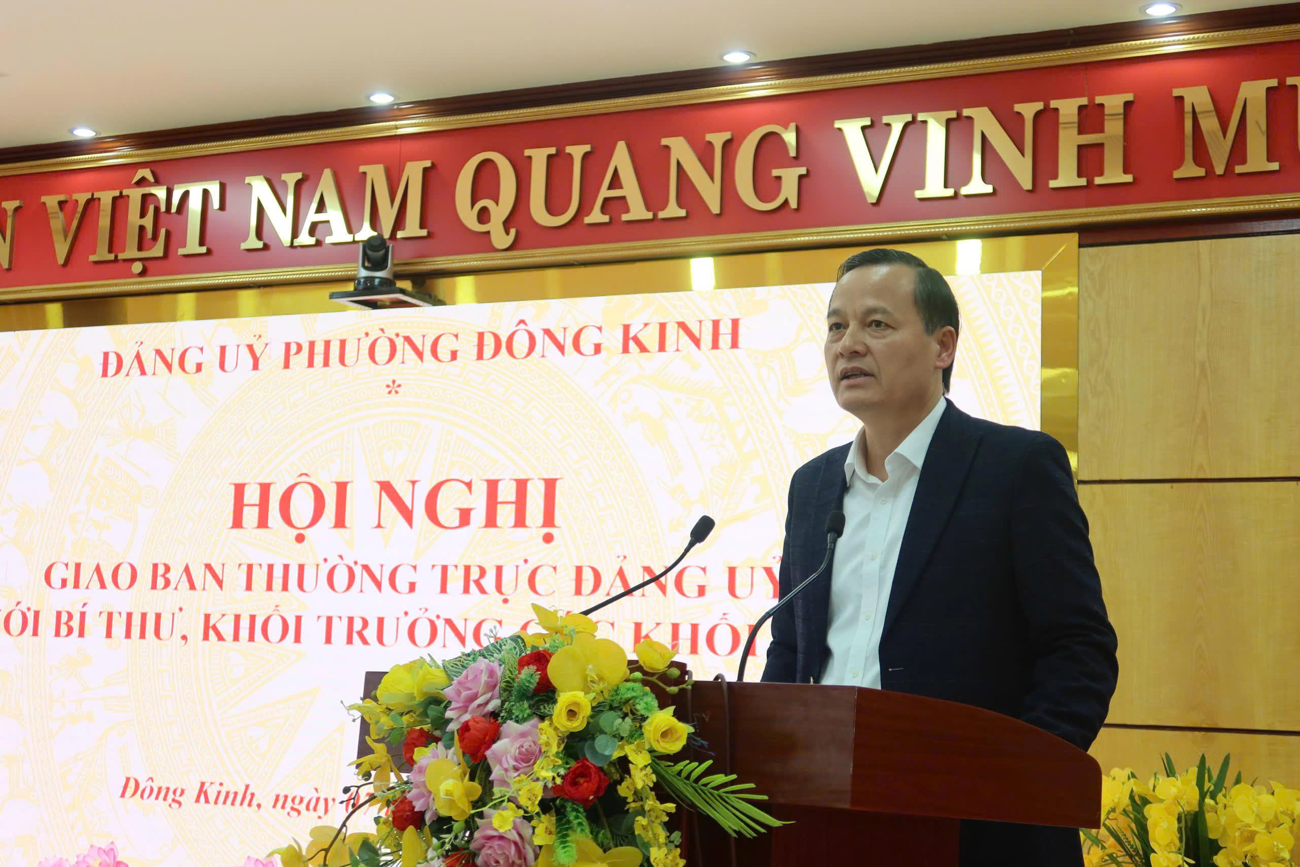 Phát biểu kết luận hội nghị, đồng chí Phùng Quang Hội – Bí thư Đảng ủy phường ghi nhận và biểu dương nỗ lực của các chi bộ, khối phố trong việc thực hiện nhiệm vụ chính trị, phát triển kinh tế - xã hội, giữ vững an ninh – trật tự, nâng cao đời sống nhân dân. Đồng chí nhấn mạnh một số kết quả nổi bật trong 10 tháng qua như: Phường đã vận hành hiệu quả mô hình chính quyền địa phương 2 cấp; Tổ chức thành công Đại hội Đại biểu Đảng bộ phường Đông Kinh lần thứ I, nhiệm kỳ 2025-2030; Lãnh đạo toàn diện các lĩnh vực kinh tế - xã hội, đảm bảo an sinh xã hội, trật tự an toàn đô thị, quốc phòng – an ninh ổn định; Tiếp tục đẩy mạnh chuyển đổi số, thực hiện tốt công tác xóa nhà tạm, nhà dột nát, và giải phóng mặt bằng các dự án trọng điểm.