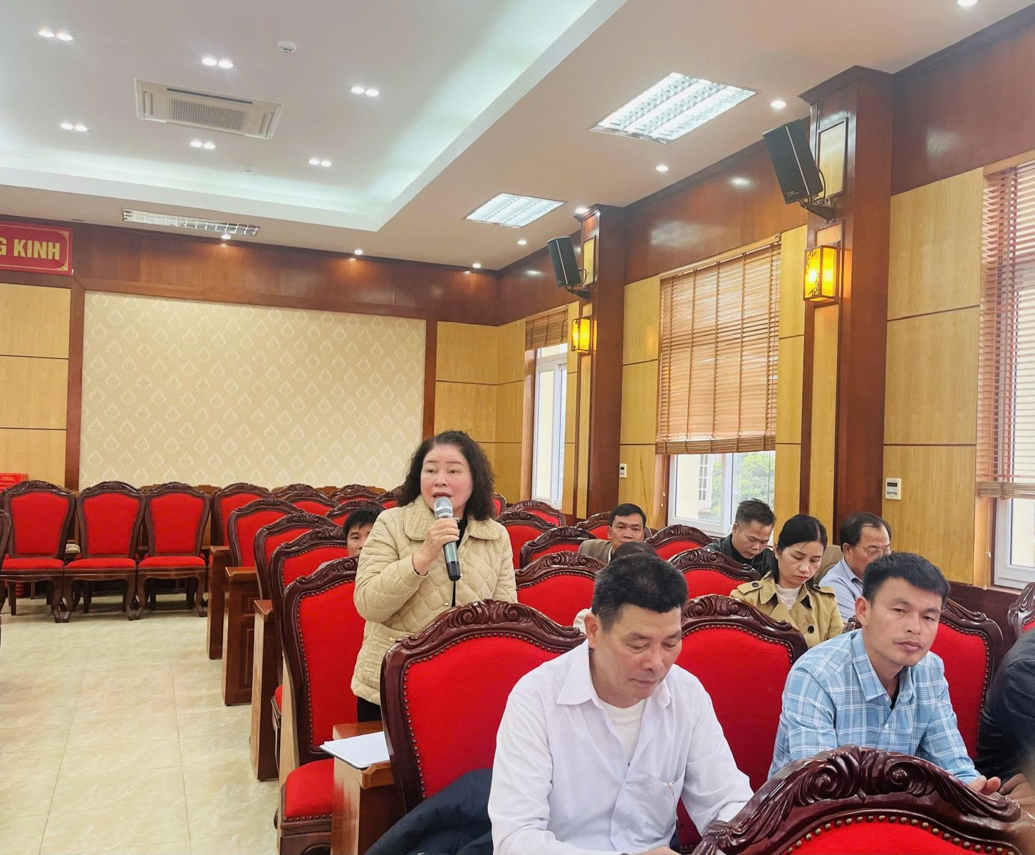 Đồng chí Linh Thị Hiền, Phó Bí thư Đảng ủy, Chủ tịch UBND phường điều hành thảo luận