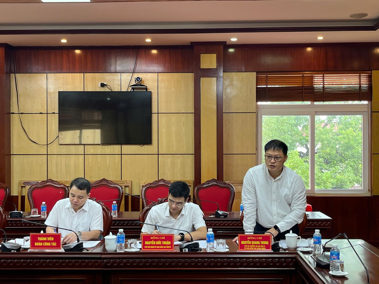 Đồng chí Dương Công Tuấn, Trưởng phòng Nghiệp vụ III, Cơ quan Ủy ban Kiểm tra Tỉnh ủy trao đổi một số nội dung tại buổi làm việc