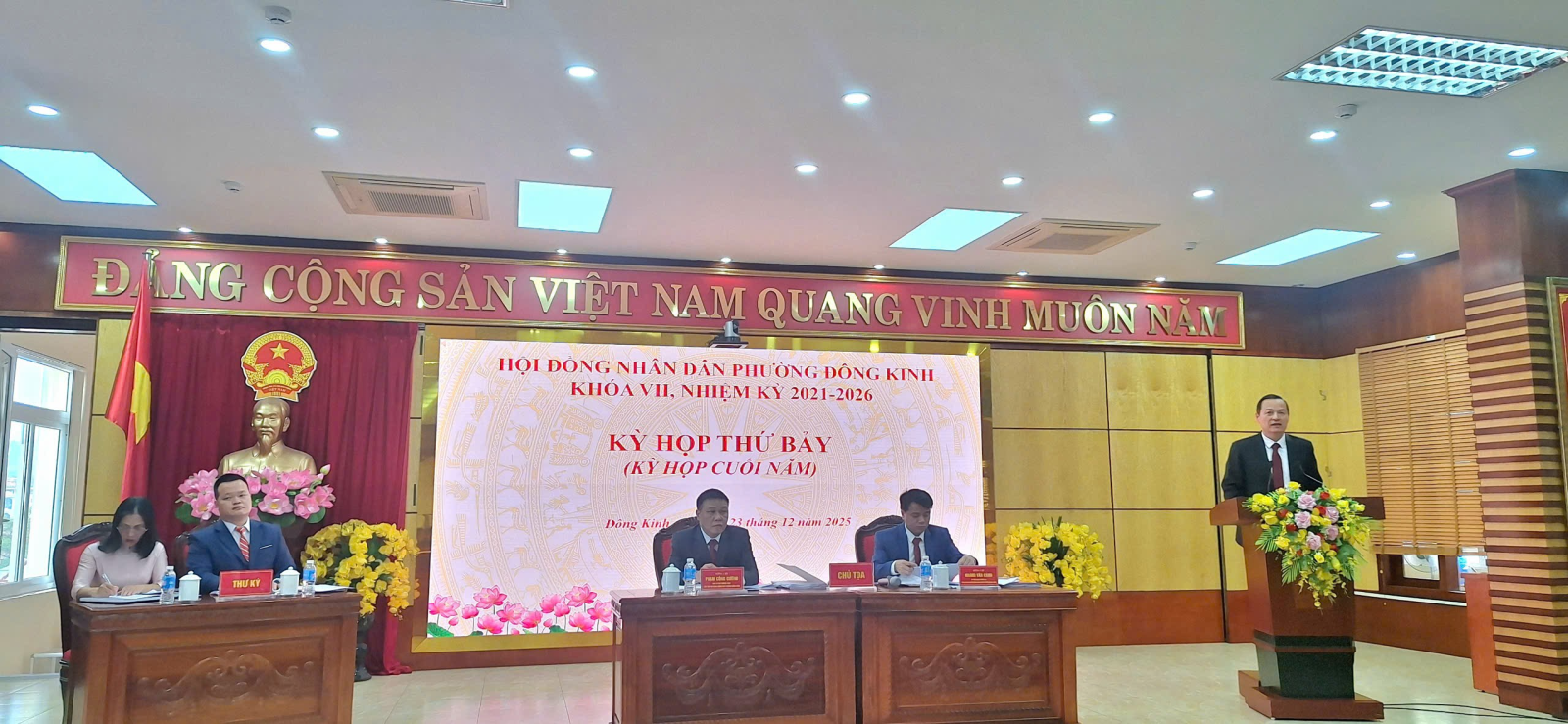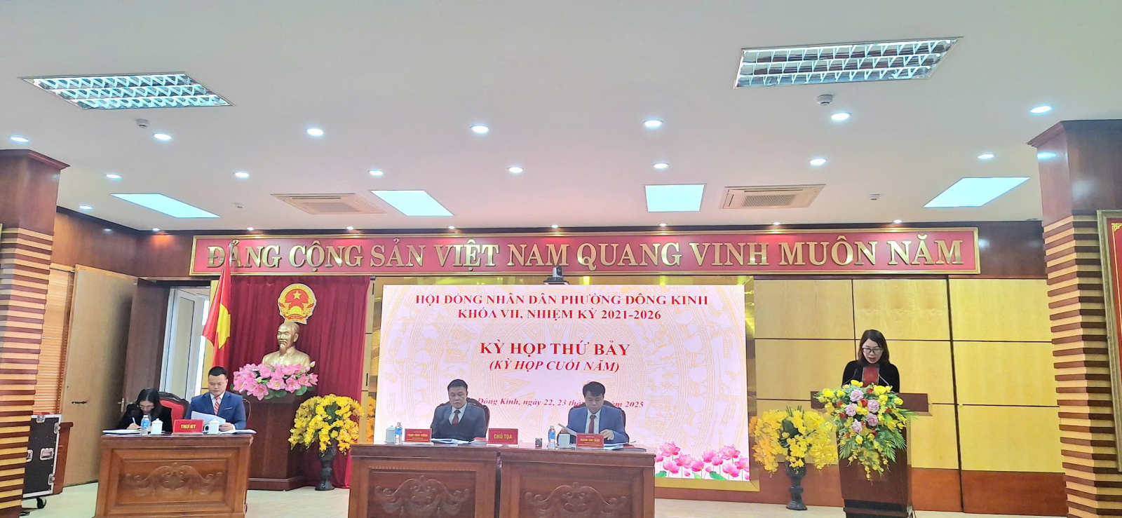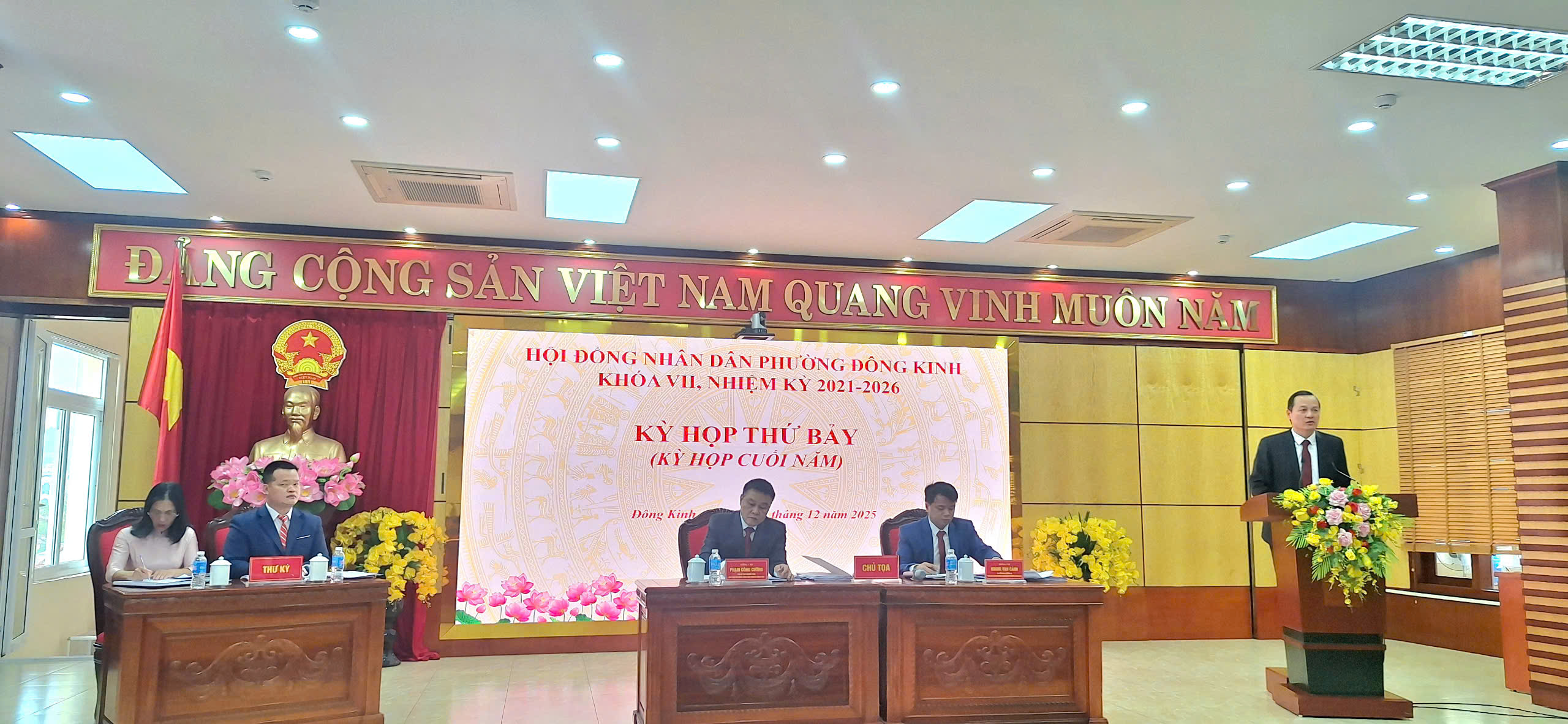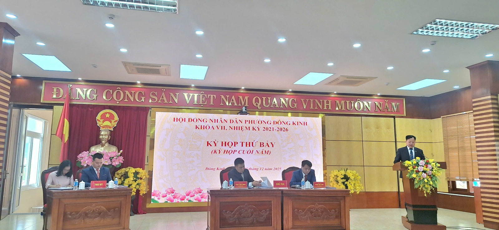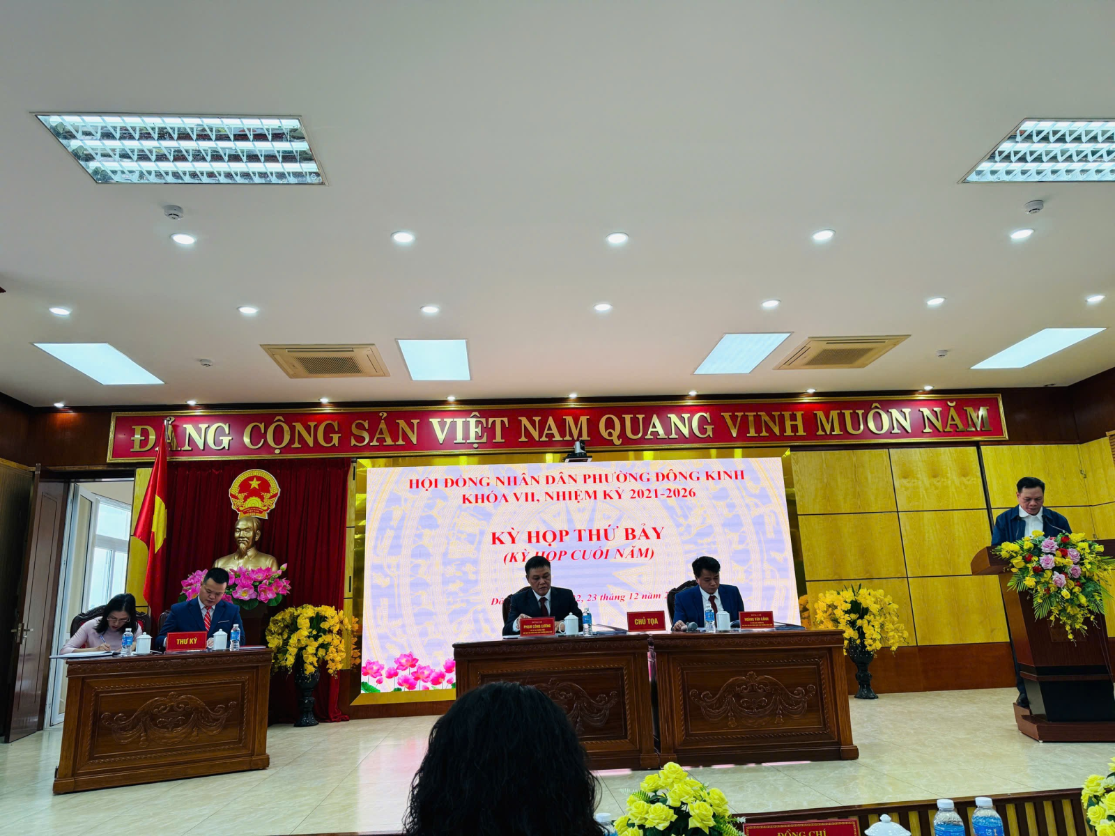 Trong hai ngày 22 và 23/12/2025, Hội đồng nhân dân phường Đông Kinh khóa VII, nhiệm kỳ 2021–2026 đã long trọng tổ chức Kỳ họp thứ Bẩy nhằm đánh giá tình hình thực hiện nhiệm vụ phát triển kinh tế – xã hội năm 2025, quyết định mục tiêu, nhiệm vụ, giải pháp năm 2026 và xem xét, thông qua nhiều nội dung quan trọng thuộc thẩm quyền.