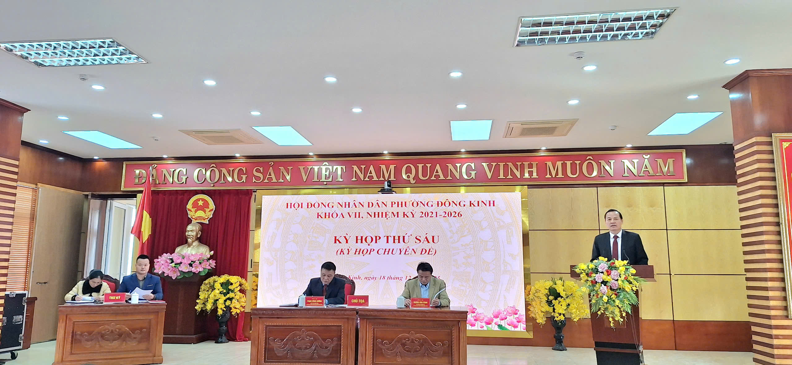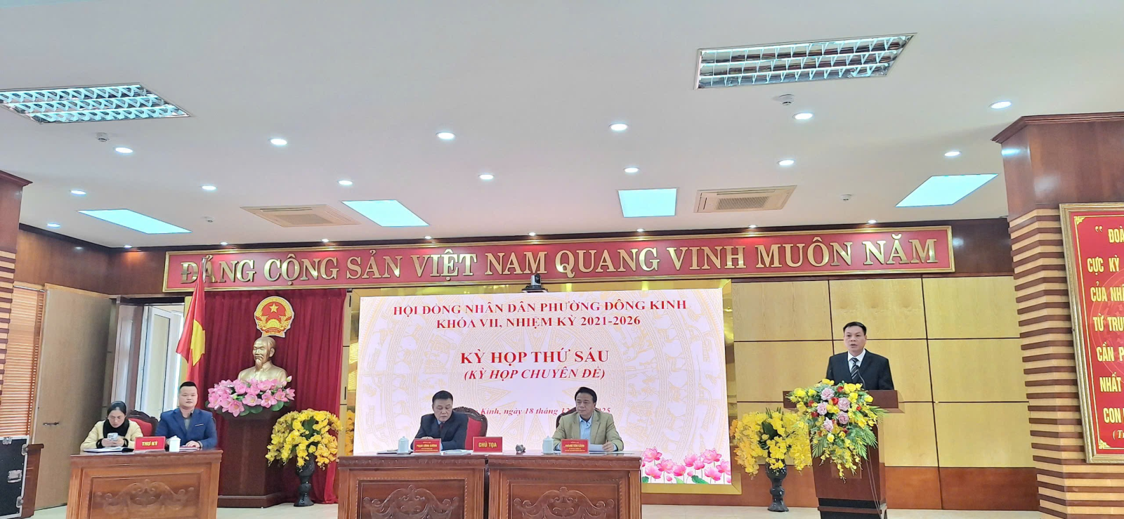 Sáng ngày 18 tháng 12 năm 2025, Hội đồng nhân dân phường Đông Kinh khóa VII, nhiệm kỳ 2021 – 2026 đã tổ chức Kỳ họp thứ Sáu (kỳ họp chuyên đề) để xem xét, quyết định một số nội dung quan trọng thuộc thẩm quyền, trong đó trọng tâm là công tác nhân sự đối với chức danh Chủ tịch UBND phường Đông Kinh.