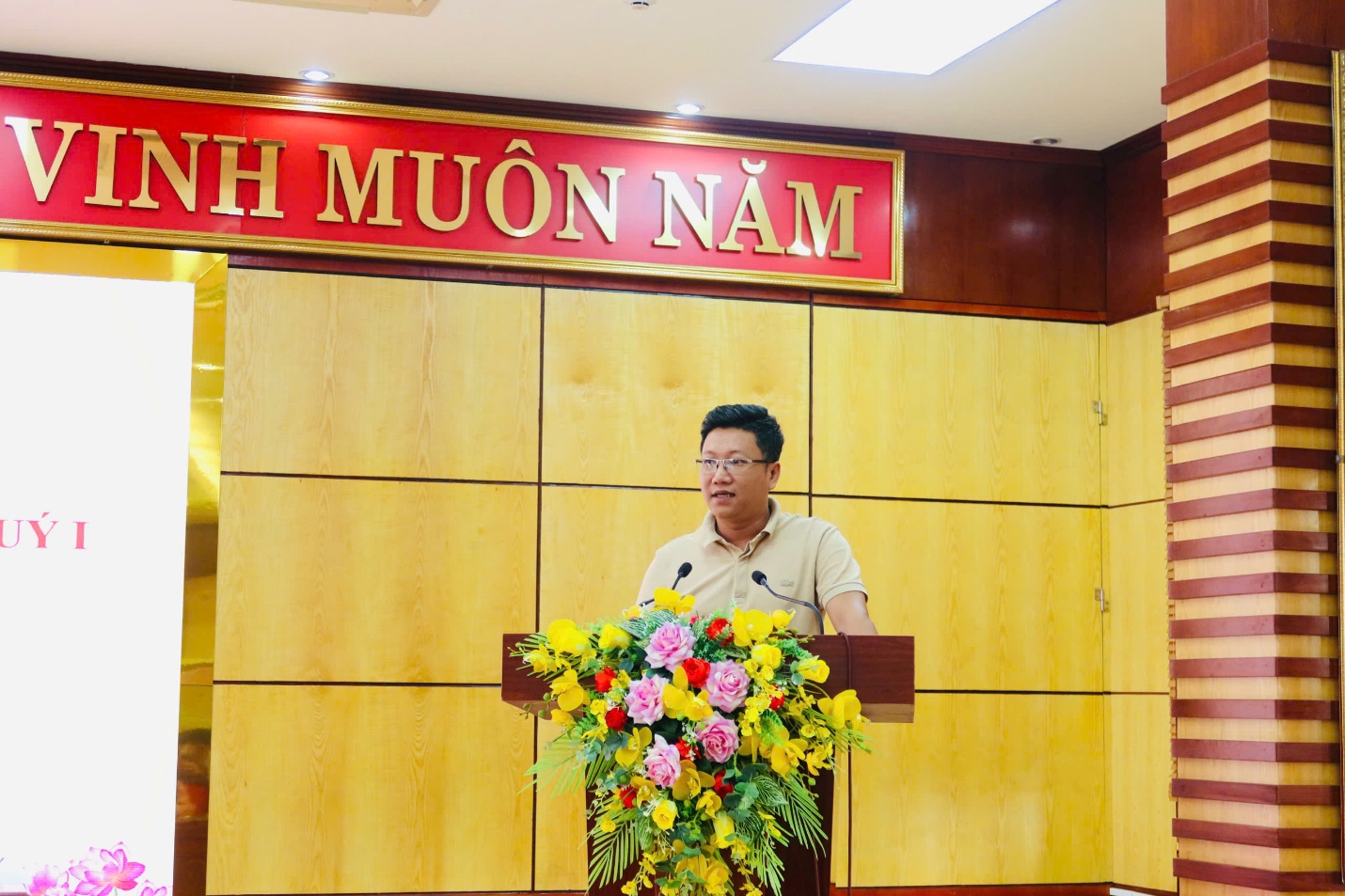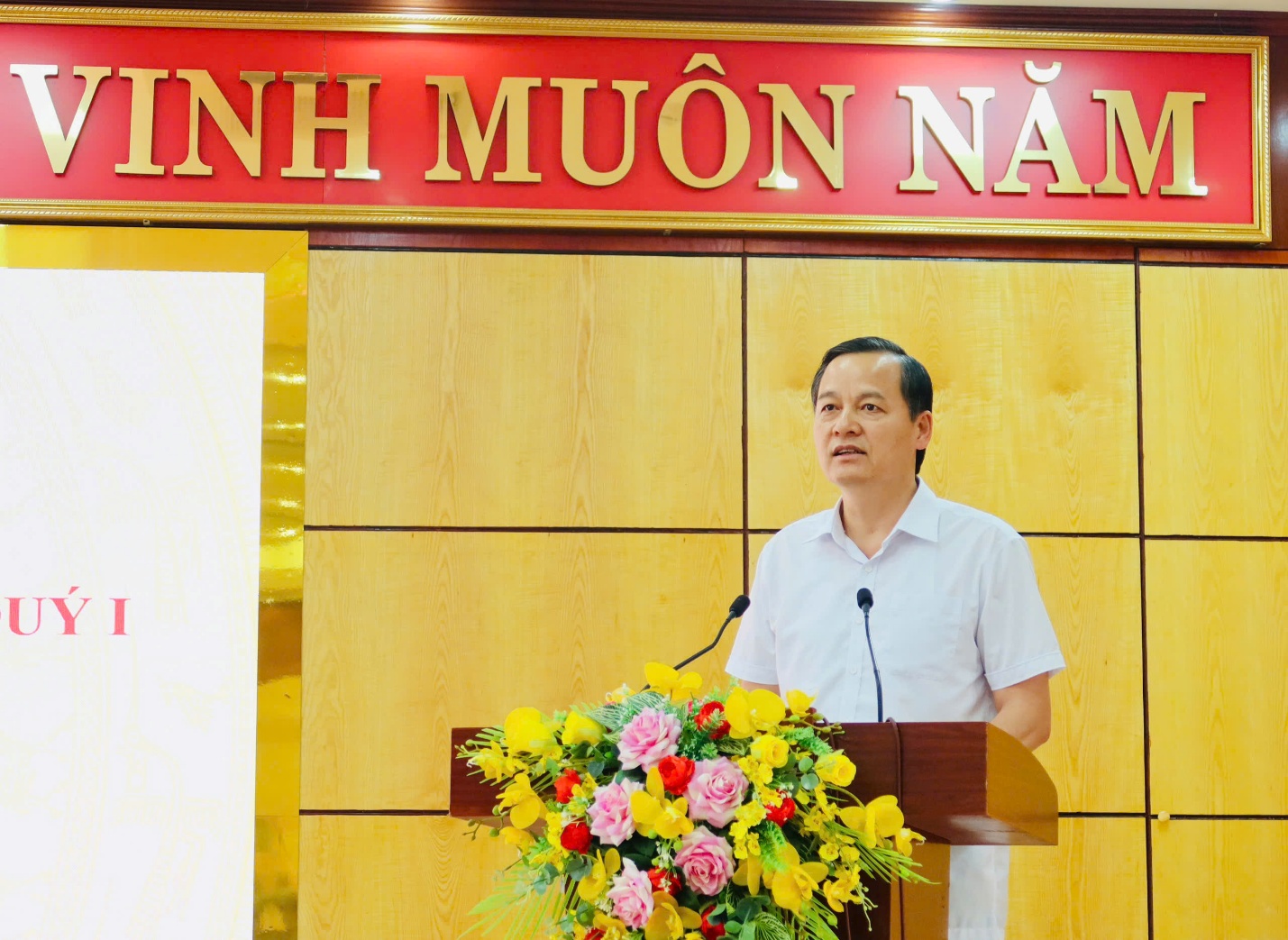 Đồng chí lãnh đạo Ban Quản lý dự án ĐTXD tỉnh phát biểu tại Hội nghị