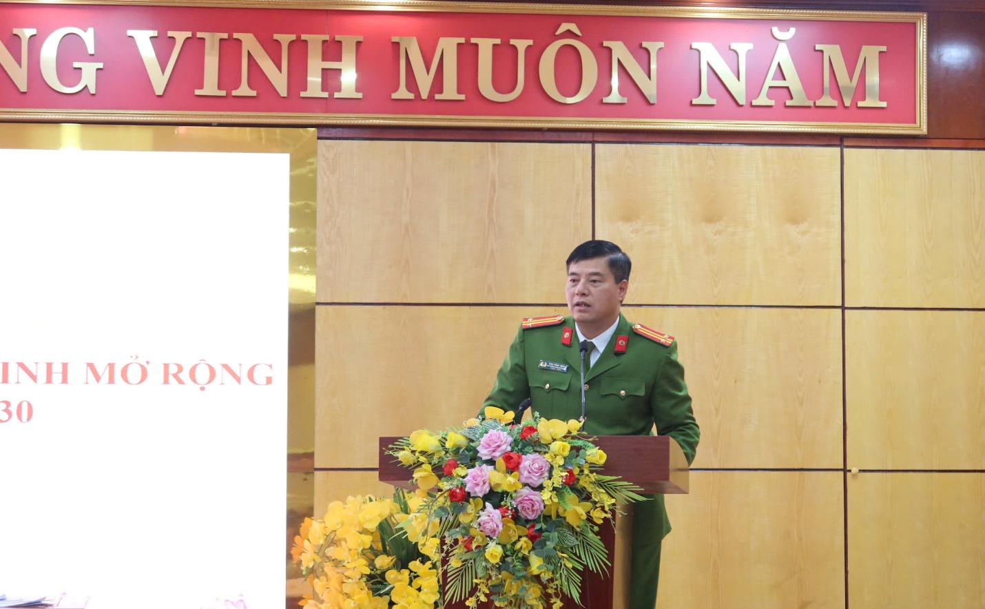 Lãnh đạo Chi bộ Công an phường phát biểu tại Hội nghị