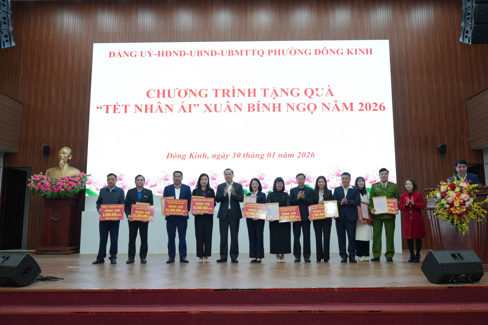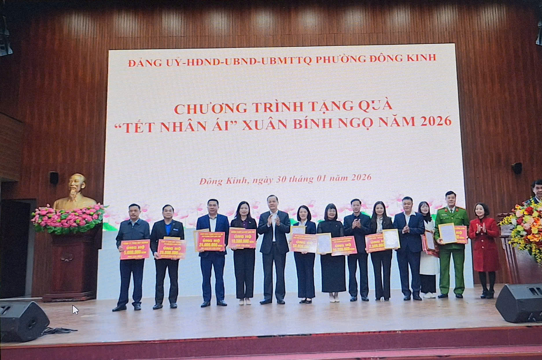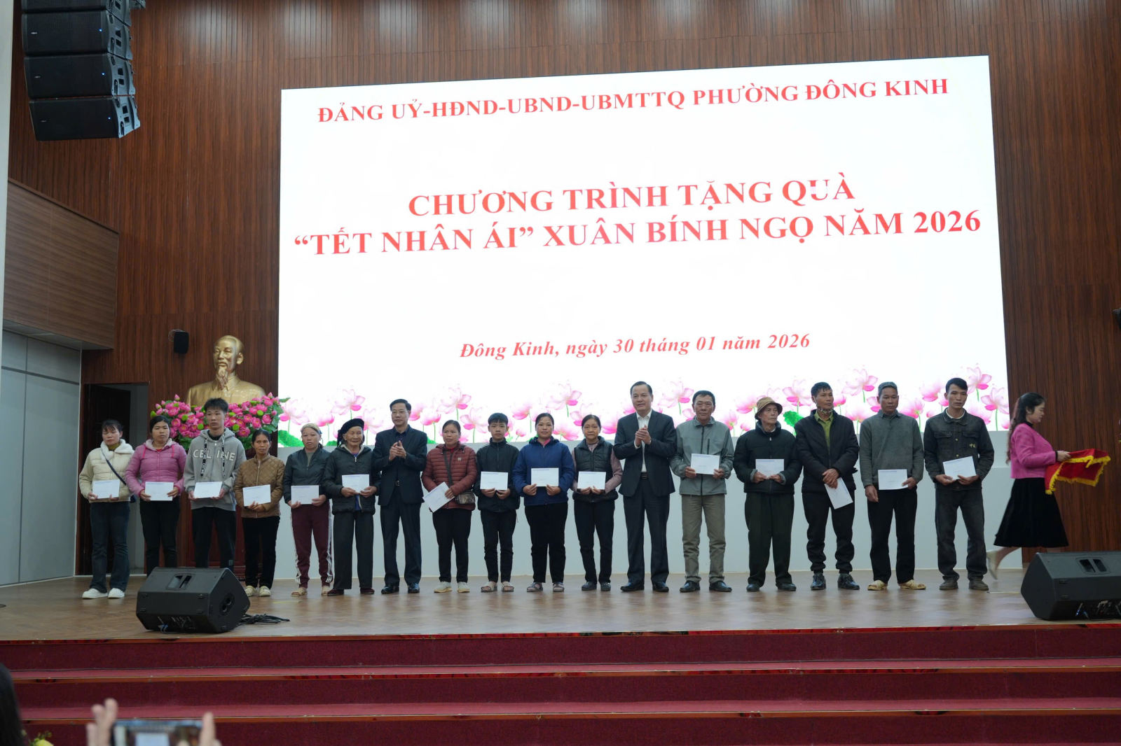Sáng ngày 30/01/2026, Đảng ủy, HĐND, UBND, Ủy ban MTTQ Việt Nam phường Đông Kinh đã phối hợp với các tổ chức, cá nhân trong và ngoài phường tổ chức chương trình tặng quà Tết cho các hộ là hộ nghèo, cận nghèo, hộ có hoàn cảnh khó khăn trên địa bàn phường Đông Kinh nhân dịp Tết nguyên đán Bính Ngọ 2026.