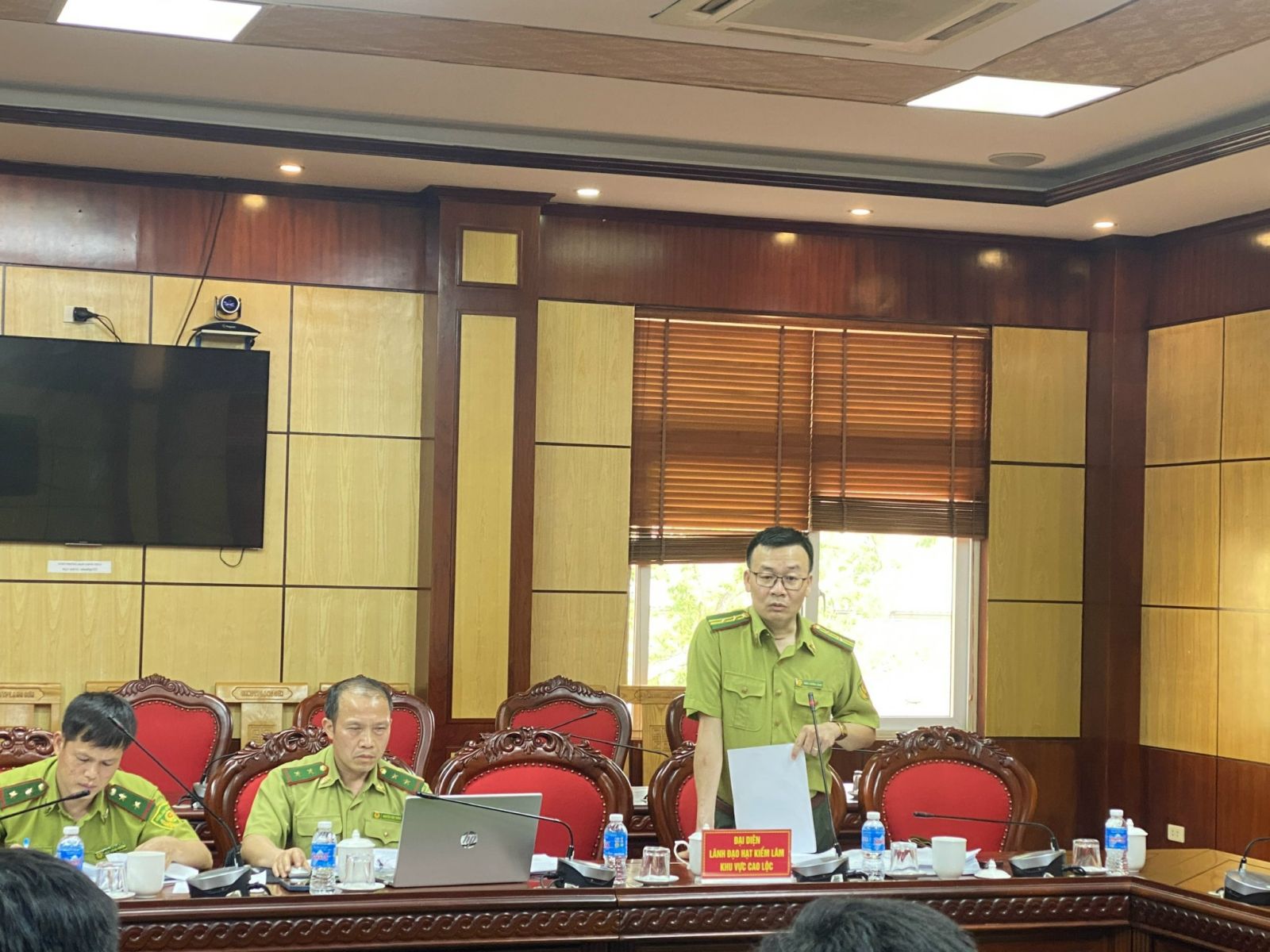 (Đại diện lãnh đạo Hạt Kiểm lâm khu vực Cao Lộc phát biểu tại cuộc họp)