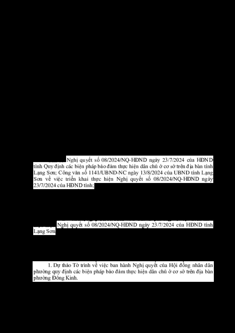 V/v đóng góp ý kiến với dự thảo Tờ trình của UBND, Nghị quyết của HĐND quy định các biện pháp bảo đảm thực hiện dân chủ ở cơ sởtrên địa bàn phường Đông Kinh