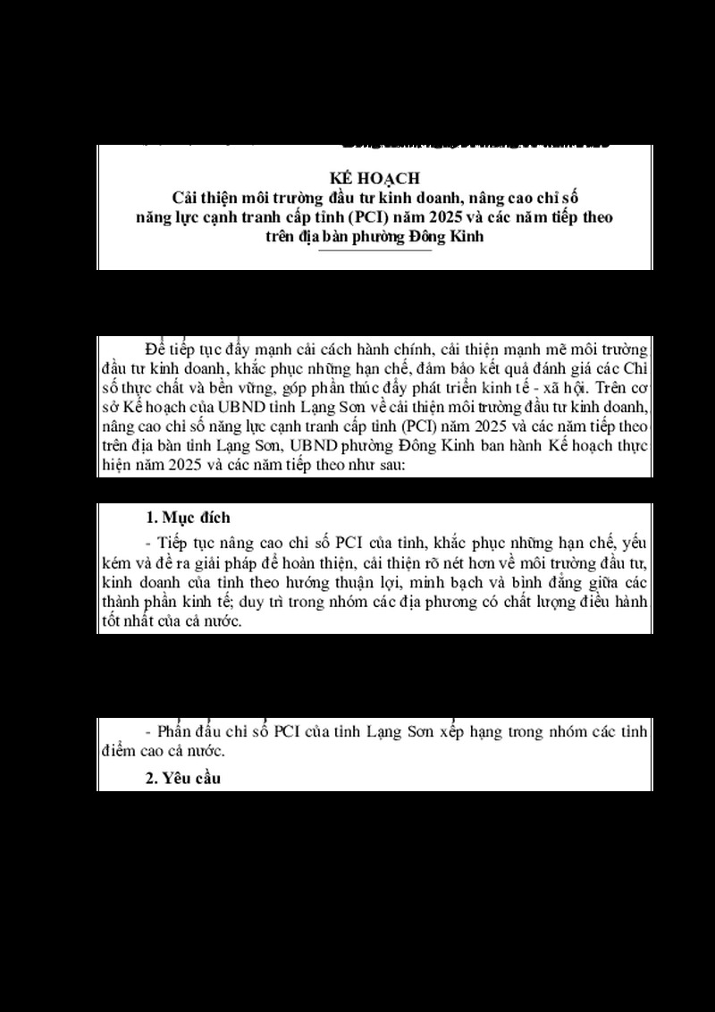 Cải thiện môi trường đầu tư kinh doanh, nâng cao chỉ số năng lực cạnh tranh cấp tỉnh (PCI) năm 2025 và các năm tiếp theo trên địa bàn phường Đông Kinh